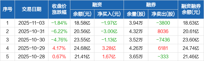 华虹公司:融资净偿还1.97亿元,两市排名第六(11-03)