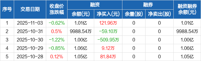 杭华股份:融资净买入121.96万元,融资余额1.01亿元(11-03)