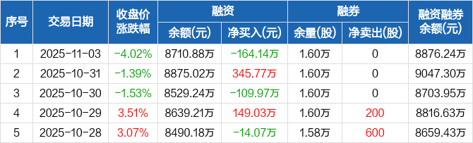 云路股份:融资净偿还164.14万元,融资余额8710.88万元(11-03)