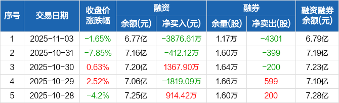盛美上海:融资净偿还3876.61万元,融资余额6.77亿元(11-03)