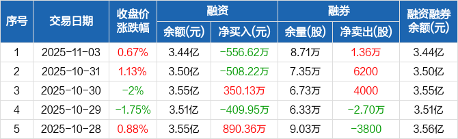 劲嘉股份:融资净偿还556.62万元,融资余额3.44亿元(11-03)