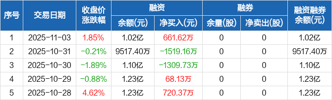 腾达科技:融资净买入661.62万元,融资余额1.02亿元(11-03)