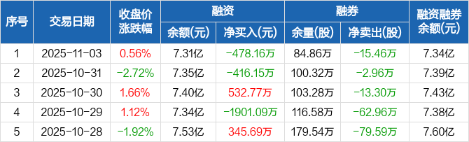 渤海租赁:融资净偿还478.16万元,融资余额7.31亿元(11-03)