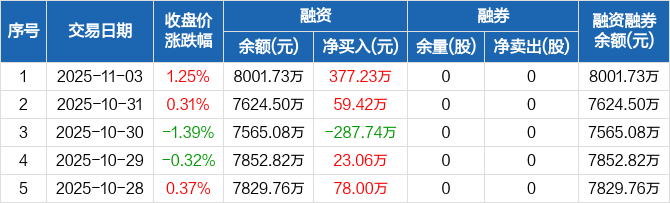 维峰电子:融资净买入377.23万元,融资余额8001.73万元(11-03)