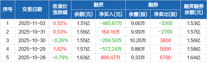 招商积余:融资净偿还485.87万元,融资余额1.51亿元(11-03)