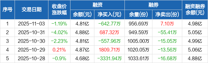 芯片ETF:融资净偿还642.77万元,融资余额4.81亿元(11-03)