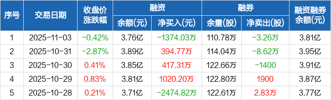 湖北能源:融资净偿还1374.03万元,融资余额3.76亿元(11-03)