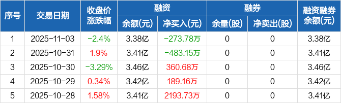 新瀚新材:融资净偿还273.78万元,融资余额3.38亿元(11-03)