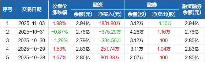 博云新材:融资净买入1831.8万元,融资余额2.94亿元(11-03)