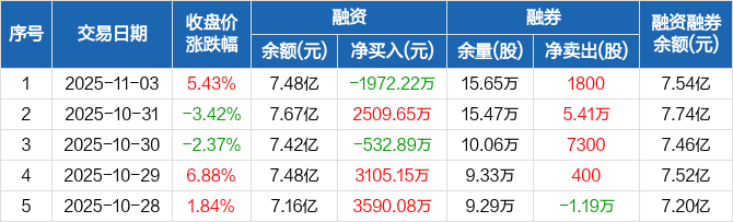 广东宏大:融资净偿还1972.22万元,融资余额7.48亿元(11-03)