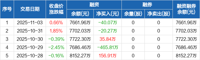 百胜智能:融资净偿还40.07万元,融资余额7661.96万元(11-03)