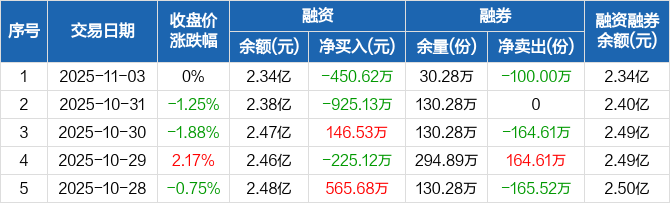 券商ETF:融资净偿还450.62万元,融资余额2.34亿元(11-03)