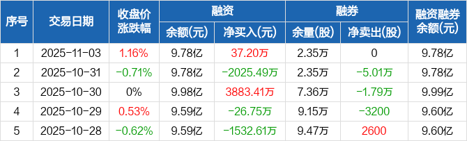 力源信息:融资净买入37.2万元,融资余额9.78亿元(11-03)
