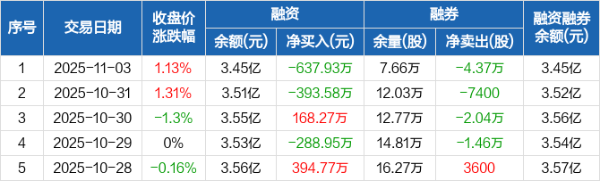 上海凯宝:融资净偿还637.93万元,融资余额3.45亿元(11-03)