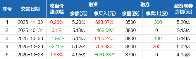 新劲刚:融资净买入693.07万元,融资余额5.2亿元(11-03)