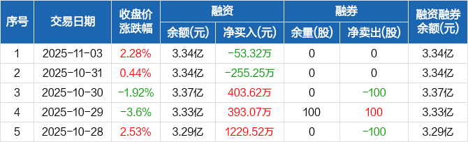 中辰股份:融资净偿还53.32万元,融资余额3.34亿元(11-03)