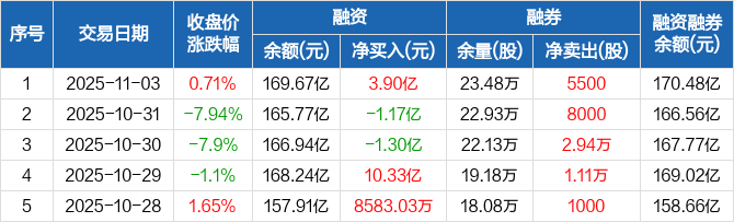 新易盛:融资净买入3.9亿元,融资余额169.67亿元(11-03)