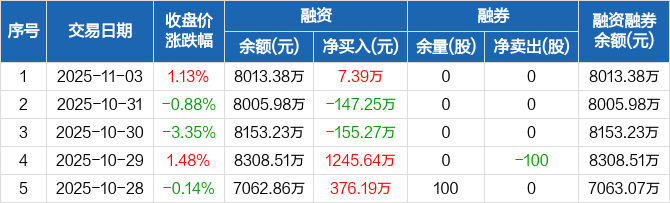 腾亚精工:融资净买入7.39万元,融资余额8013.38万元(11-03)