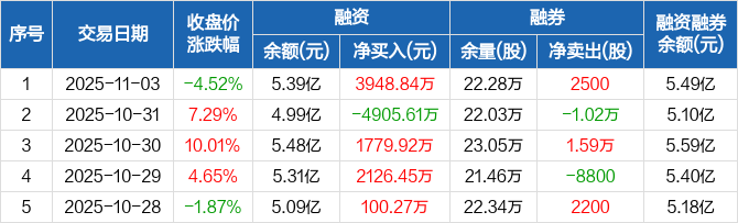 永兴材料:融资净买入3948.84万元,融资余额5.39亿元(11-03)