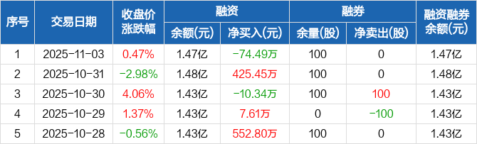 金鹰重工:融资净偿还74.49万元,融资余额1.47亿元(11-03)
