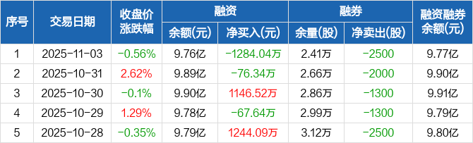 金龙鱼:融资净偿还1284.04万元,融资余额9.76亿元(11-03)