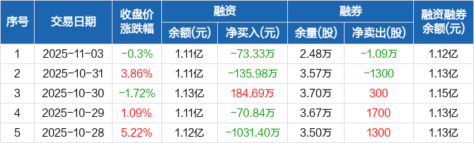 瑞丰新材:融资净偿还73.33万元,融资余额1.11亿元(11-03)