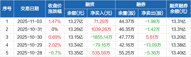 荣盛石化:融资净买入71.29万元,融资余额13.27亿元(11-03)