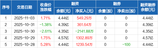 金杯电工:融资净买入549.29万元,融资余额4.44亿元(11-03)