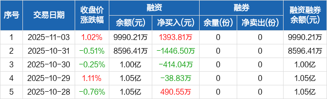 自由现金流ETF:融资净买入1393.81万元,融资余额9990.21万元(11-03)