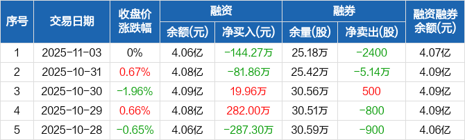 金融街:融资净偿还144.27万元,融资余额4.06亿元(11-03)