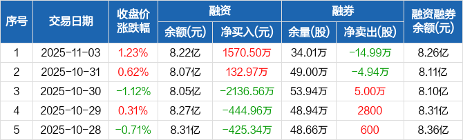 新希望:融资净买入1570.5万元,融资余额8.22亿元(11-03)