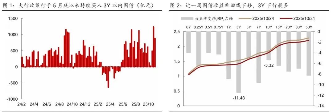 当前债市对重启国债买卖的定价已较为充分,央行更多出于配合财政发力、补充银行体系流动性的考量,为债市注入一股稳定剂、中长期来看对债市影响偏中性。一方面央行对政府债权由24年12月的2.9万亿元下降至25年9月的2.2万亿元,恢复国债买卖有利于为央行作更多政策储备、加强央行调节的灵活性,同时更好配合财政发力。另一方面央行净买入国债有利于增强银行间市场流动性、缓解银行的负债端压力,同时部分代替降准的流动性释放。