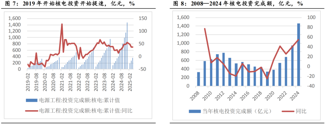 在当前全球政治经济形势动荡、各国关税冲突不断的背景下,核电需求偏内需、对能源安全又具有重要意义,且核电本身的持续高景气度,叠加相关设备的国产替代渗透率提升,有望为产业链相关企业带来更大的投资机会,我们认为核电设备的交付有望从今年开始迎来持续的高峰期。