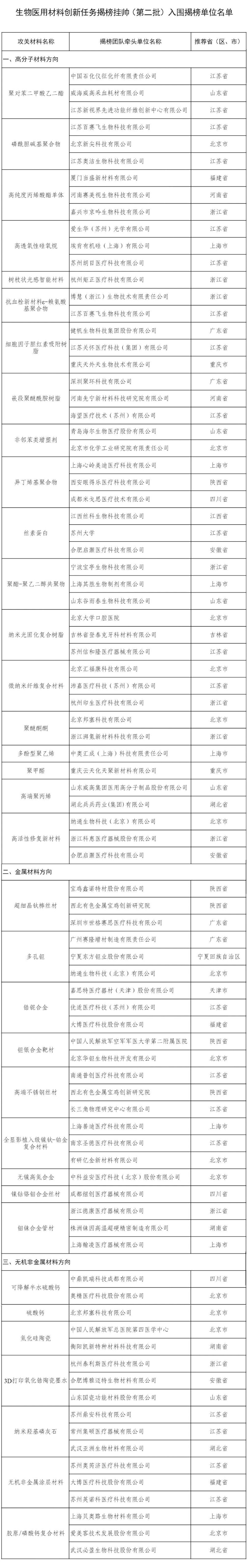 第二批生物医用材料创新任务揭榜挂帅入围揭榜单位名单公布 86个单位入围