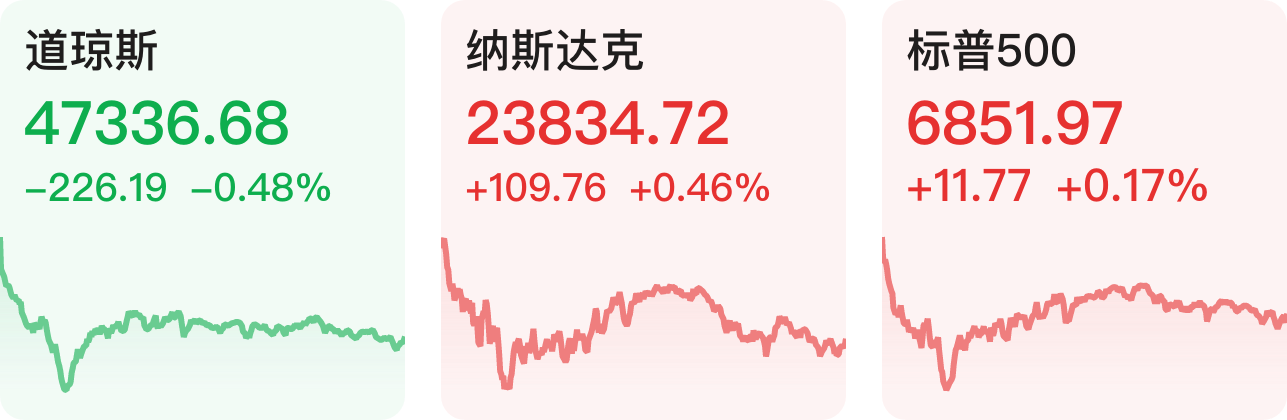 美股三大指数收盘涨跌不一,纳指涨0.46%,标普500指数涨0.17%,道指跌0.48%。亚马逊涨约4%,特斯拉、英伟达涨超2%。热门中概股涨跌不一,纳斯达克中国金龙指数涨0.26%。腾讯音乐涨超3%,蔚来、华住涨超2%。