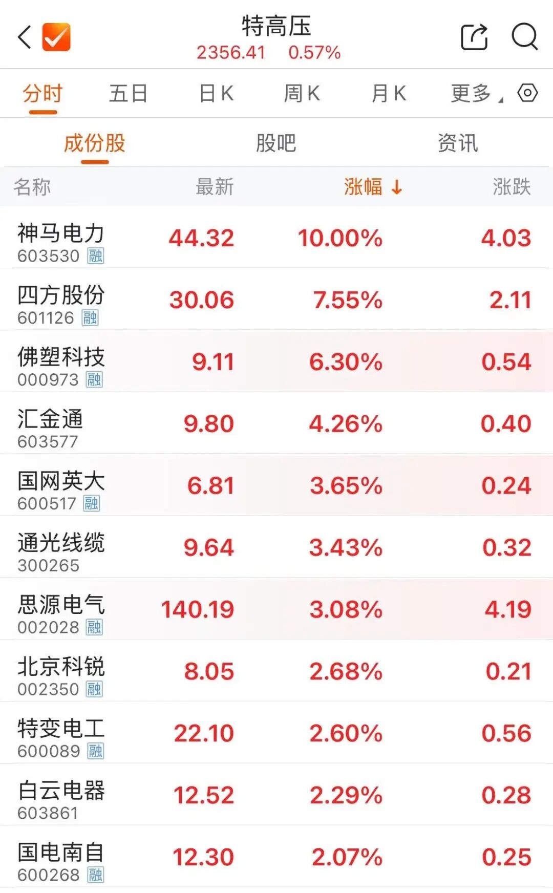 特高压概念异动拉升,神马电力涨停,四方股份、佛塑科技、白云电器等跟涨。