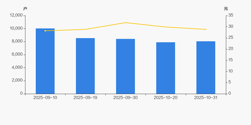 2025年9月10日至今,公司股东户数显著下降,区间跌幅为19.67%。2025年9月10日至2025年10月31日区间股价上涨2.20%。