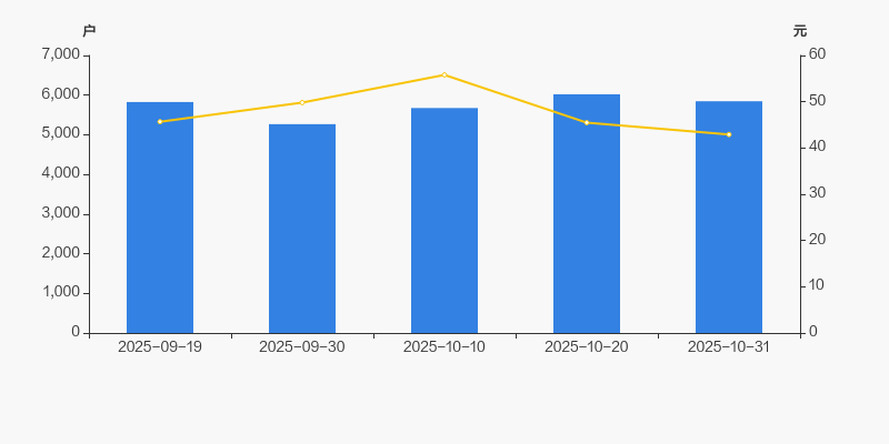 截至2025年10月31日,公司最新总股本为6800万股,其中流通股本为5674.78万股。户均持有流通股数量由上期的9423股上升至9707股,户均流通市值41.66万元。