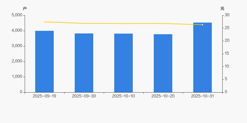 2025年9月19日至今,公司股东户数显著增长,区间涨幅为13.42%。2025年9月19日至2025年10月31日区间股价下降4.11%。