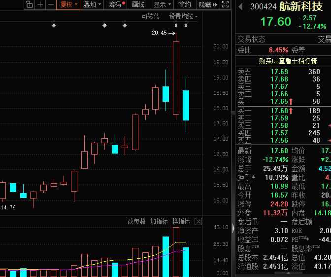 个股方面,航新科技(300424)因公告控制权变更事项进展,今日复牌,早盘股价大幅走弱,一度跌超14%,该股停牌前一日尾盘股价曾异动拉升,收盘涨超10%。