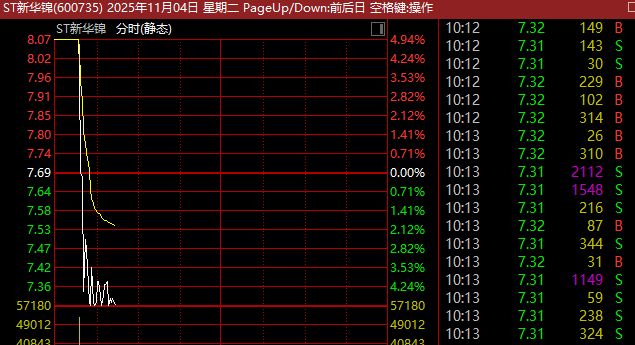 个股方面,ST新华锦(600735)盘中一度触及跌停,上演“天地板”,成交额近3亿元。