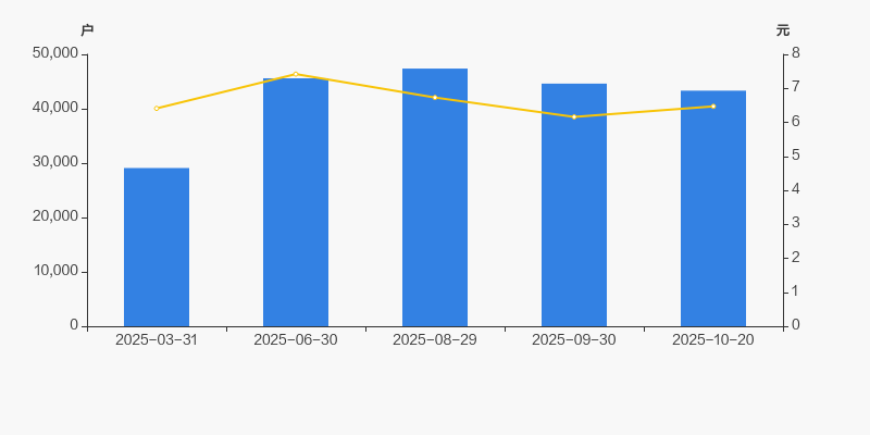 2025年3月31日至今,公司股东户数显著增长,区间涨幅为48.88%。2025年3月31日至2025年10月20日区间股价上涨0.94%。