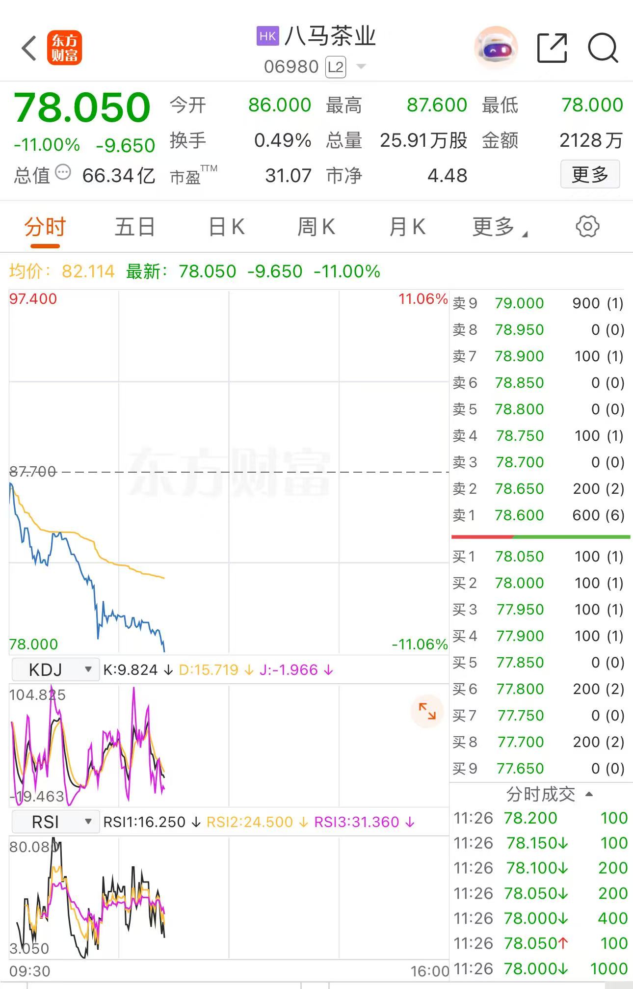 港股异动 | 八马茶业盘中跌超11% 上半年营收净利双降