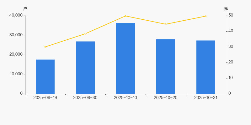 2025年9月19日至今,公司股东户数显著大幅增长,区间涨幅达55.87%。2025年9月19日至2025年10月31日区间股价上涨65.80%。