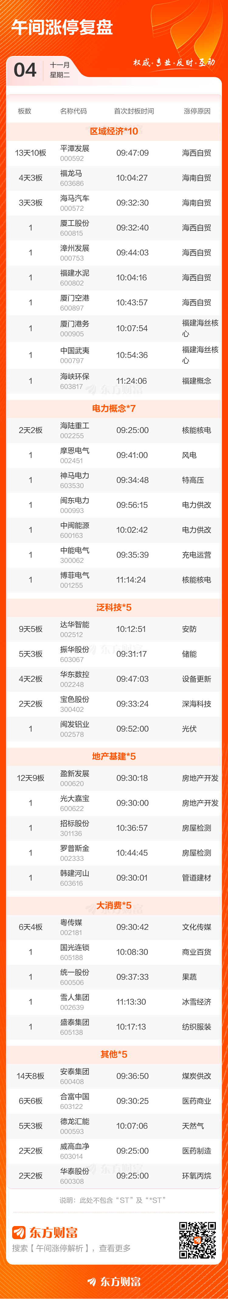 11月4日午间涨停复盘:54股涨停 平潭发展13天10板