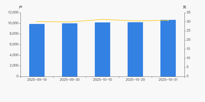 自2025年9月19日以来,公司股东户数连续4期上涨,截至目前增幅为7.83%。2025年9月19日至2025年10月31日区间股价上涨2.05%。