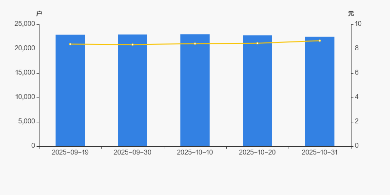 2025年9月19日至今,公司股东户数有所下降,区间跌幅为1.93%。2025年9月19日至2025年10月31日区间股价上涨3.34%。
