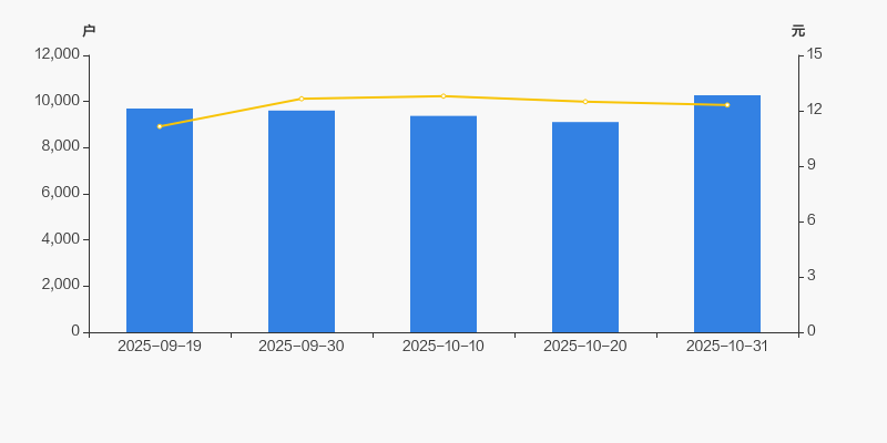 2025年9月19日至今,公司股东户数有所增长,区间涨幅为5.93%。2025年9月19日至2025年10月31日区间股价上涨10.40%。