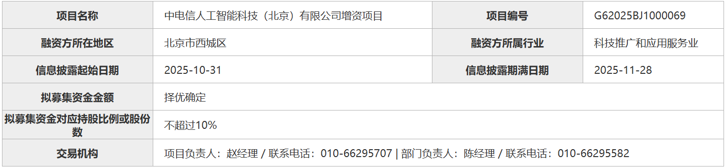 近日,中国电信旗下两家企业的增资引战引起了市场关注。2025年10月31日,中国电信旗下人工智能平台——中电信人工智能科技(北京)有限公司(下称“中国电信AI公司”)增资项目在北京产权交易中心挂牌;11天前,天翼视联科技股份有限公司(下称“天翼视联”)也已同步“开门迎客”。