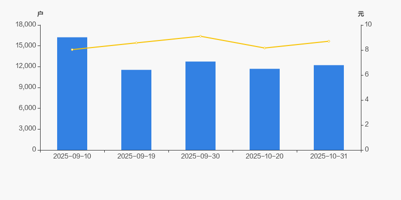 2025年9月10日至今,公司股东户数显著下降,区间跌幅为24.73%。2025年9月10日至2025年10月31日区间股价上涨8.34%。